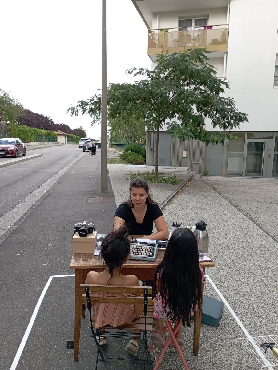 En 2024, plusieurs bureaux se sont installés dans la rue, avec une machine à écrire et des chaises pour les passants. Mais cette fois, ce sont les habitants qui tiennent les bureaux. L'objectif est de créer de l'interaction entre habitants et passants, de créer du lien entre les différents profils de personnes côtoyant le quartier pour diffuser les paroles des habitants sur le territoire. Nous voulons faire entrer de la fiction dans le quotidien du quartier autant par les mots que par les photographies argentiques.