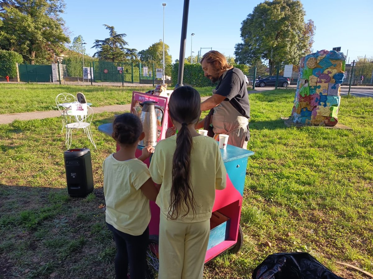 Nous avons installé tout l’été notre remorque-bar et notre remorque de jeux, et avons sorti notre mobilier pour accueillir des habitants et passants. Toutes les générations s’y sont retrouvées, autant pour profiter de la terrasse, boire et manger, jardiner, participer à des ateliers artistiques, écouter des concerts que voir des spectacles.Ouvert tous les jeudis et vendredis de l’été, ce rendez-vous régulier a permis de réinvestir le parc du quartier et d’en faire un espace de rencontres, de créativité et de sociabilité.