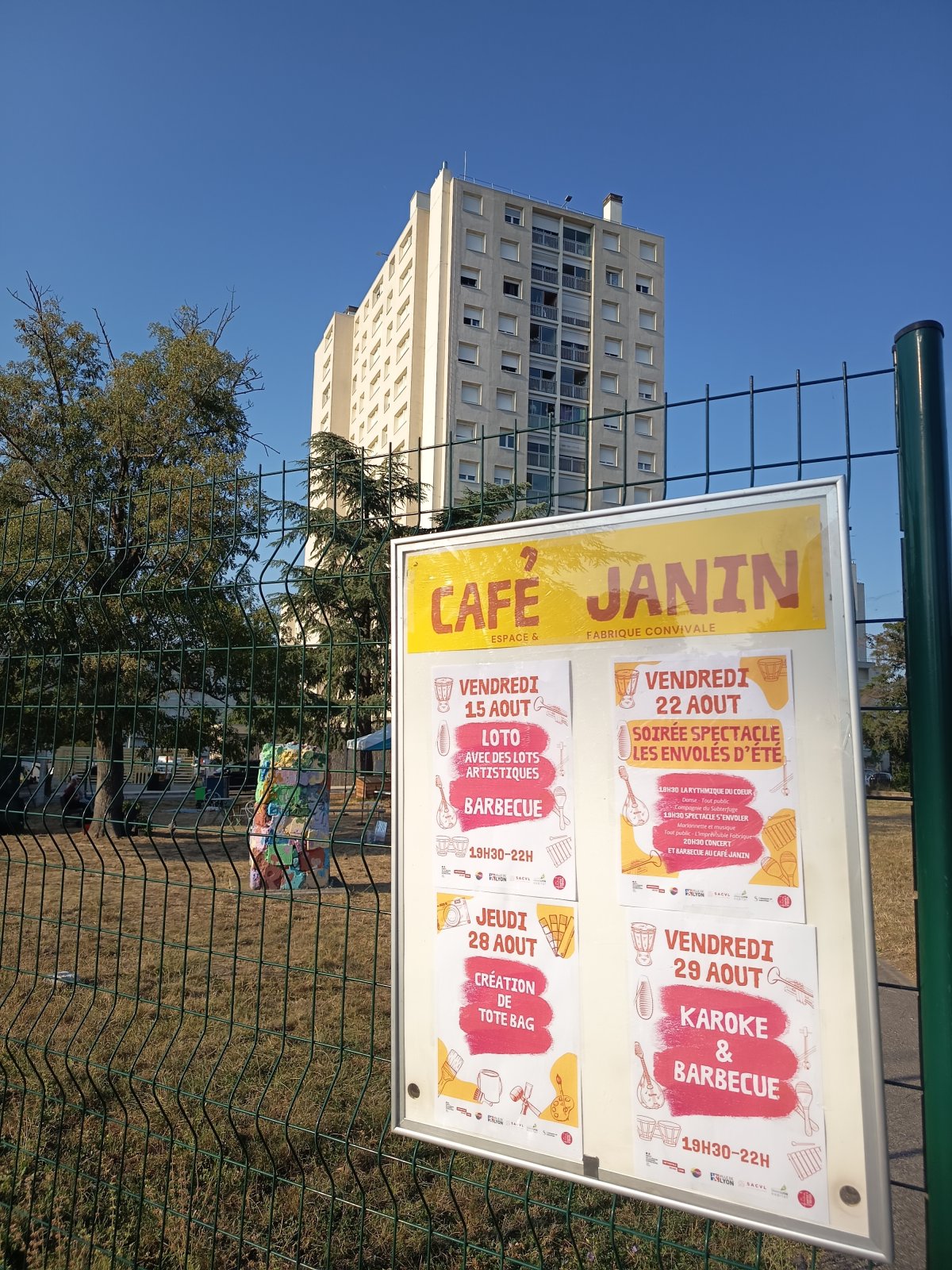 C’est pourquoi la perspective d’augmenter la médiation artistique et sociale durant l’année 2026 avec les partenaires et les habitants grâce à notre médiateur est un premier pas.Nous rouvrirons le Café Janin au printemps 2026 pour assurer une nouvelle saison jusqu’à la rentrée scolaire.