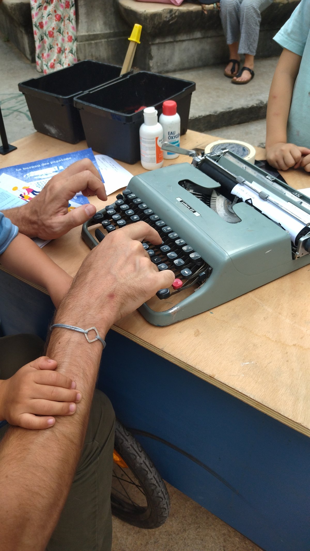 Collecter des objets insolites et des histoires emblématiques des quartiers. Cette collecte autour de la machine à écrire permettra de créer un musée ambulant (à vélo) avec les habitants, imaginer des capsules sonores autour de ces objets et créer des médiations historiques avec les partenaires musées (Gadagne, Imprimerie, Malartre). Le but est de transmettre des histoires passées au plus près des habitants.