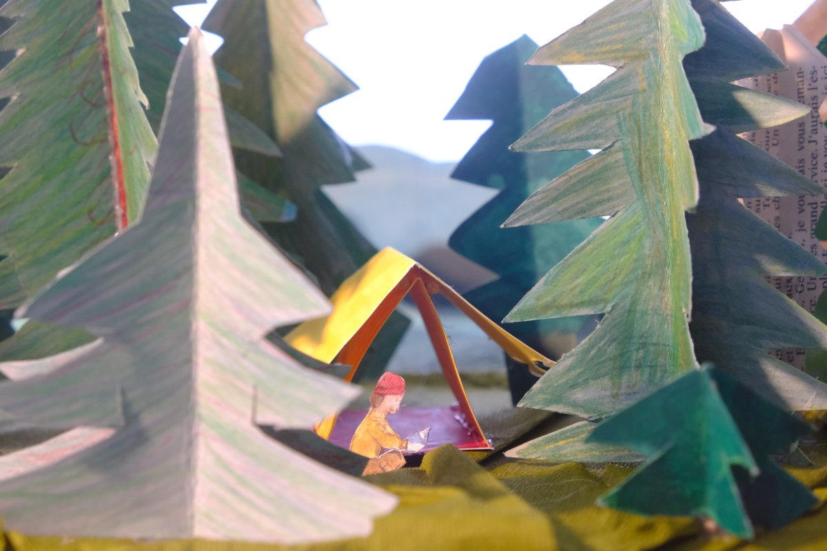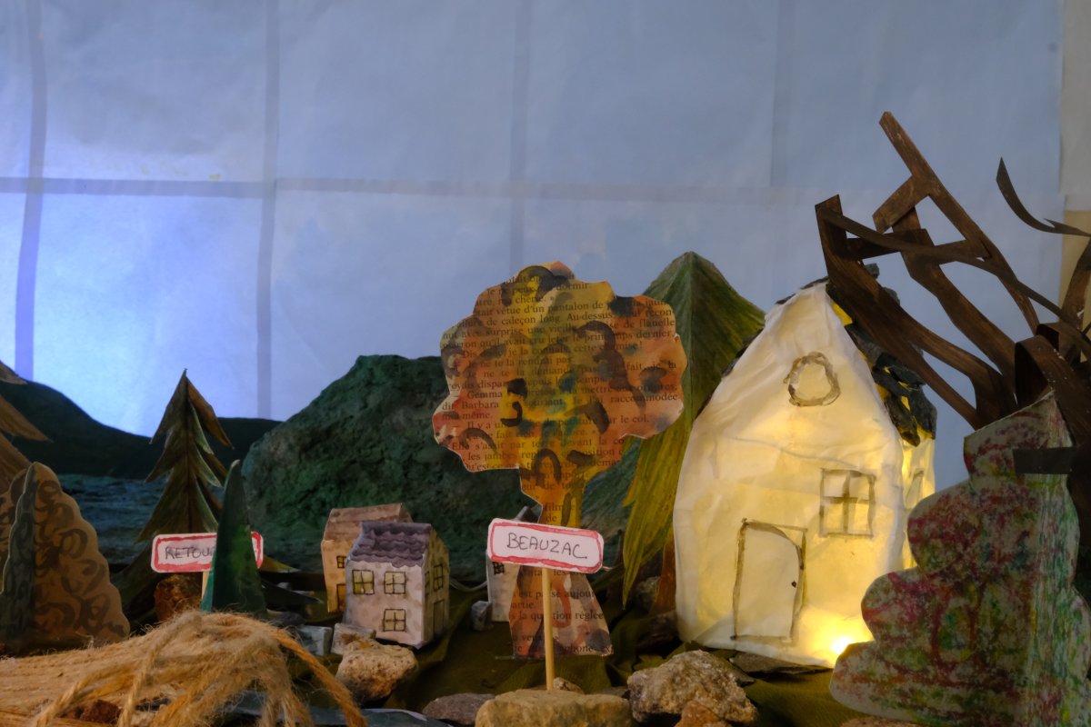 Charlotte a mis en scène l'histoire de Luna et la renarde dans ce décor réalisé lors de ces ateliers participatifs et a produit un film du spectacle.