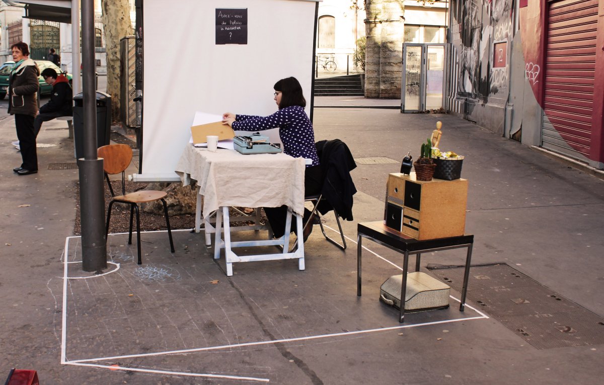 Mots clés : installation, espace public, machine à écrire, rencontres