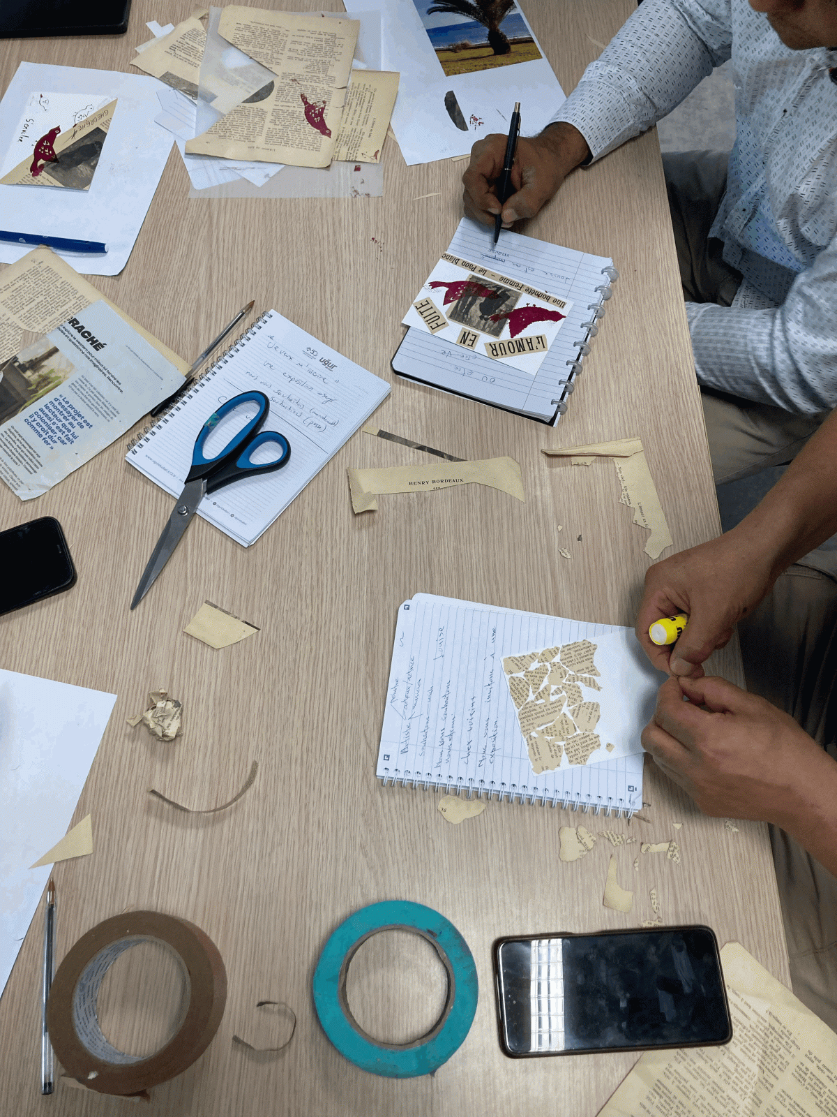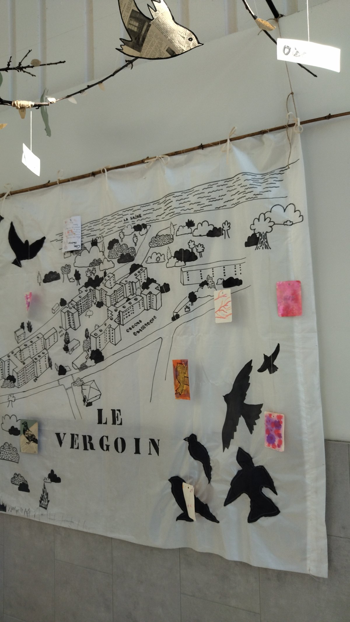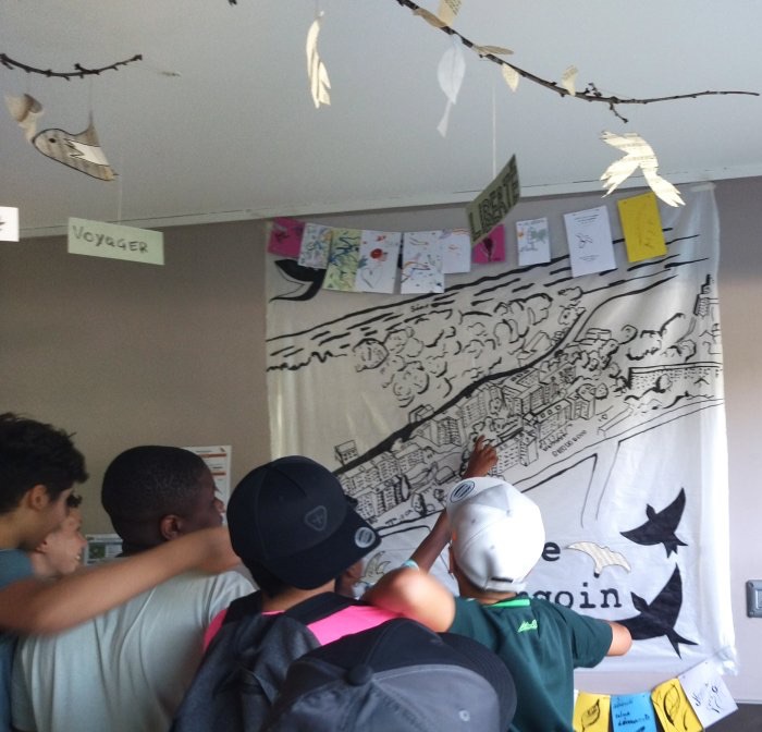 Nous avons construit l'exposition avec des adultes du cours de Français Langue Étrangère du Pôle 9, lors de 7 ateliers participatifs. 2 autres ateliers hors les murs avec un médiateur du Pôle 9 ont été organisés avec les enfants, directement dans le quartier.