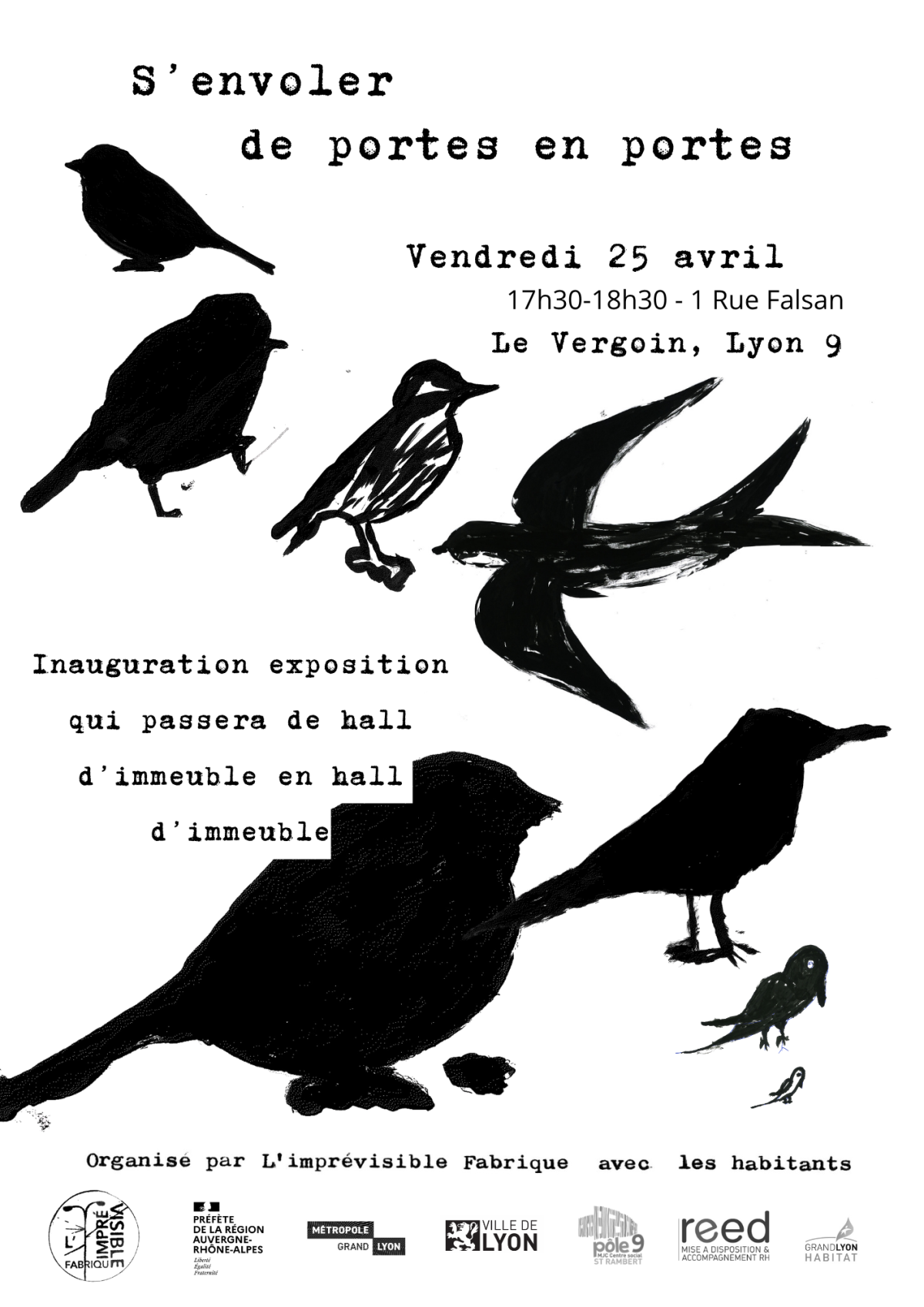 L’exposition itinérante en halls d’immeubles du Vergoin s’inscrit dans notre projet S’égarer, qui est un projet sur la thématique de l’envol, et qui intervient auprès de public captifs.